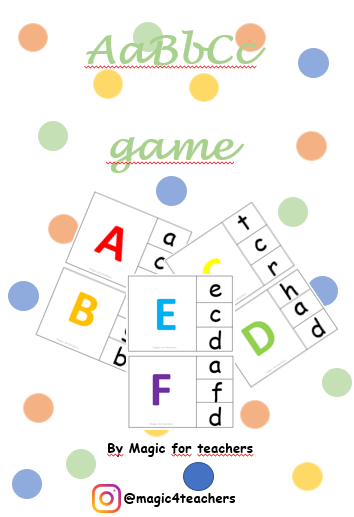 ABC game for children who are learning to distinguish between Capital letters and lowercase. It is great for a reading/writing corner.