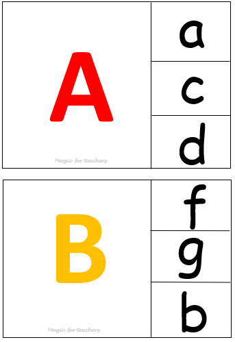 Juego perfecto para los peques que están aprendiendo a distinguir entre mayúsculas y minúsculas. Es un juego ideal para el rincón de lectoescritura.
